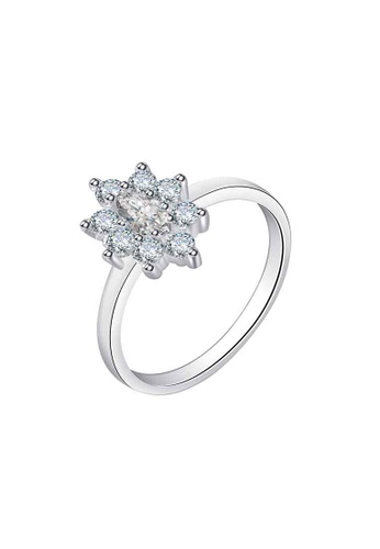 Original 92 5 Italy Silver Unique Flower With Stone Design Ladies Ring