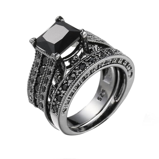 Pocciol Women Diamond Ring Girls Lovers Vintage Crystal Engagement Wedding Band Ring Set